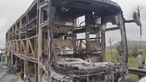 आंध्र प्रदेश के कुरनूल जिले में चिन्ना टेकुर के पास हैदराबाद से बेंगलुरु जा रही कावेरी ट्रैवल्स की एसी बस में आग लगने से कम से कम 20 लोगों के मारे जाने की आशंका है। लगभग 21 लोग बस का शीशा तोड़कर बस से कूद गए जिससे उनकी जान बच गई। जो लोग अपनी जान बचाने में कामयाब नहीं हो सके उनकी जलकर मौत हो गई। ये दर्दनाक हादसा आज सुबह लगभग 3 बजे की है, जब एक बाइक से टक्कर और ईंधन के रिसाव होने के कुछ ही मिनटों बाद बस में आग लग गई, जिसमें 20 लोगों की मारे जाने की खबर मिल रही है, जबकि हादसे में घायल 11 लोगों का अस्पताल में इलाज चल रहा है।