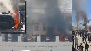बीजेपी कार्यालय के बाहर सुरक्षा वाहन को लगाई आग